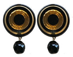 Vintage glass jet and gold tops with faceted jet crystal drops on clip or post earring backs. Please specify which you prefer. 1.5"L x 1"W