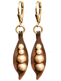 1920's irridescent copper glass accents on vintage coppery brass leaf dangles on 22K vermeil leverback earring fixtures.