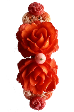 Vintage celluloid and '40's deco glass with coral bead center on French barrette fixture. 4"L x 1.5"W