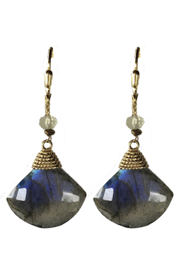 Faceted multicolor labradorite drops from prehnite (pale jade color) accents on 22K vermeil lever back earrings.