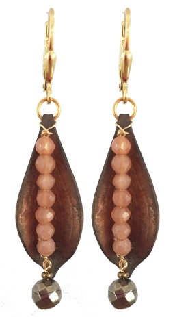 Vintage brass leaves with faceted red aventurine and pyrite drops on 22K vermeil lever back earring backs. 1.25"L x .5"W