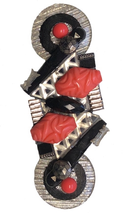 1920's-'60's deco glass stones create this mod style brooch. 3.75"H x 1.5"W