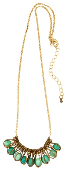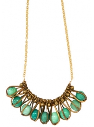 Beautiful framing design for the face. Made with polished chrysoprase beads, brass findings and new brass beads on vermeil chain with lobster claw closure and 2 inches of extender chain. 16"L + 2" extender