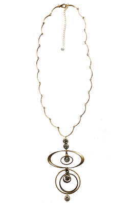 Modern, clean design with labradorite accents on vintage brass hoops and new brass chain. 18" chain with 4" pendant + 3" extension